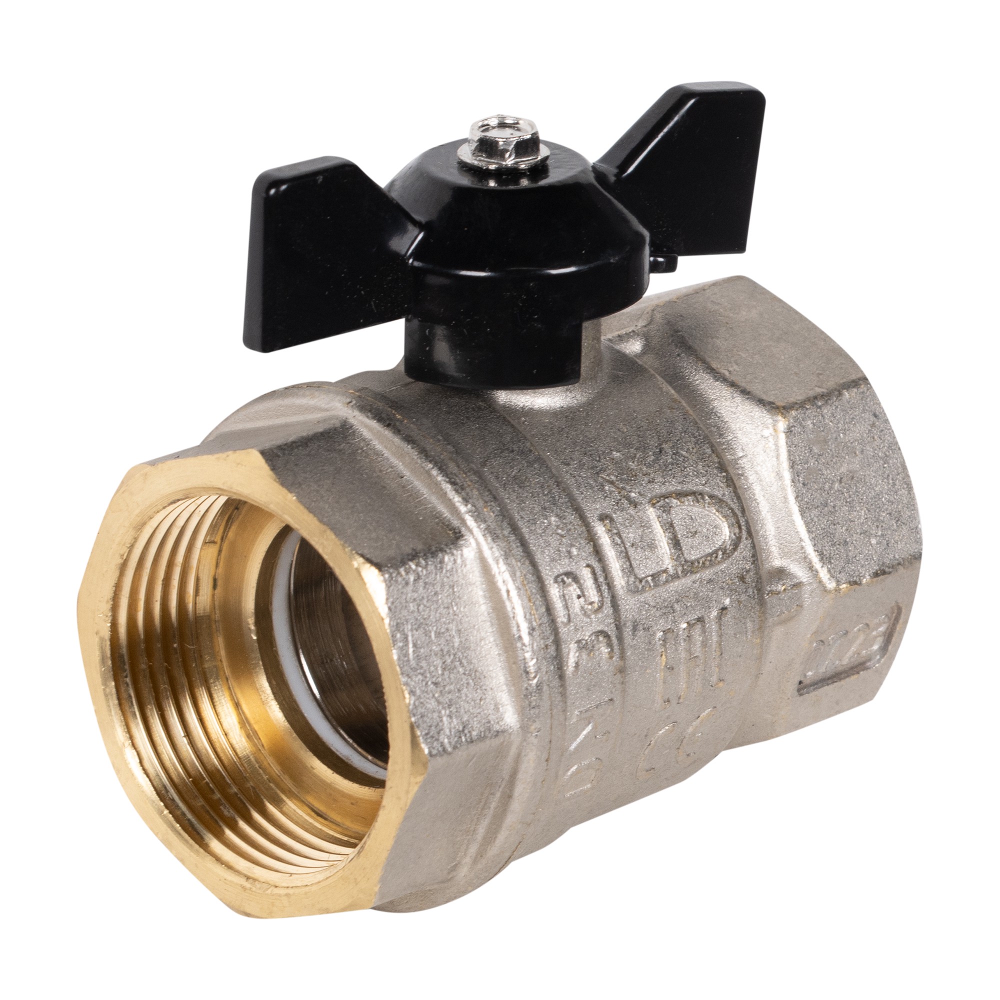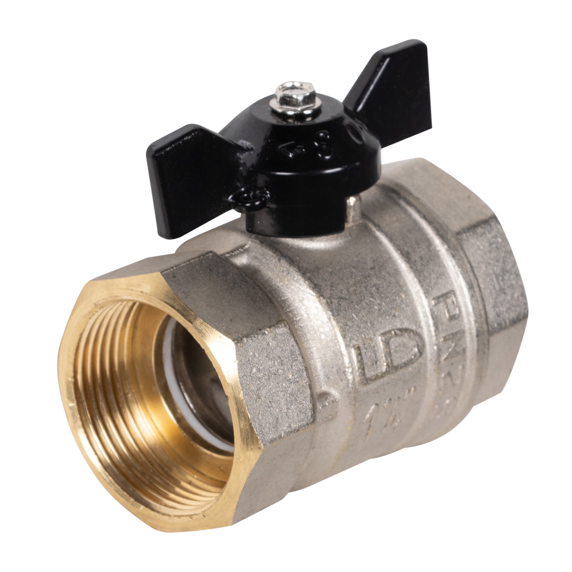 Кран шаровой латунный LD Pride 47.32.B-B.Б Ду 32 Ру 25 вн-вн, (бабочка)